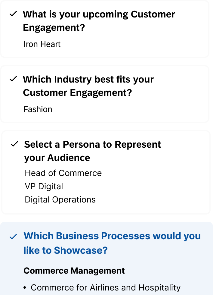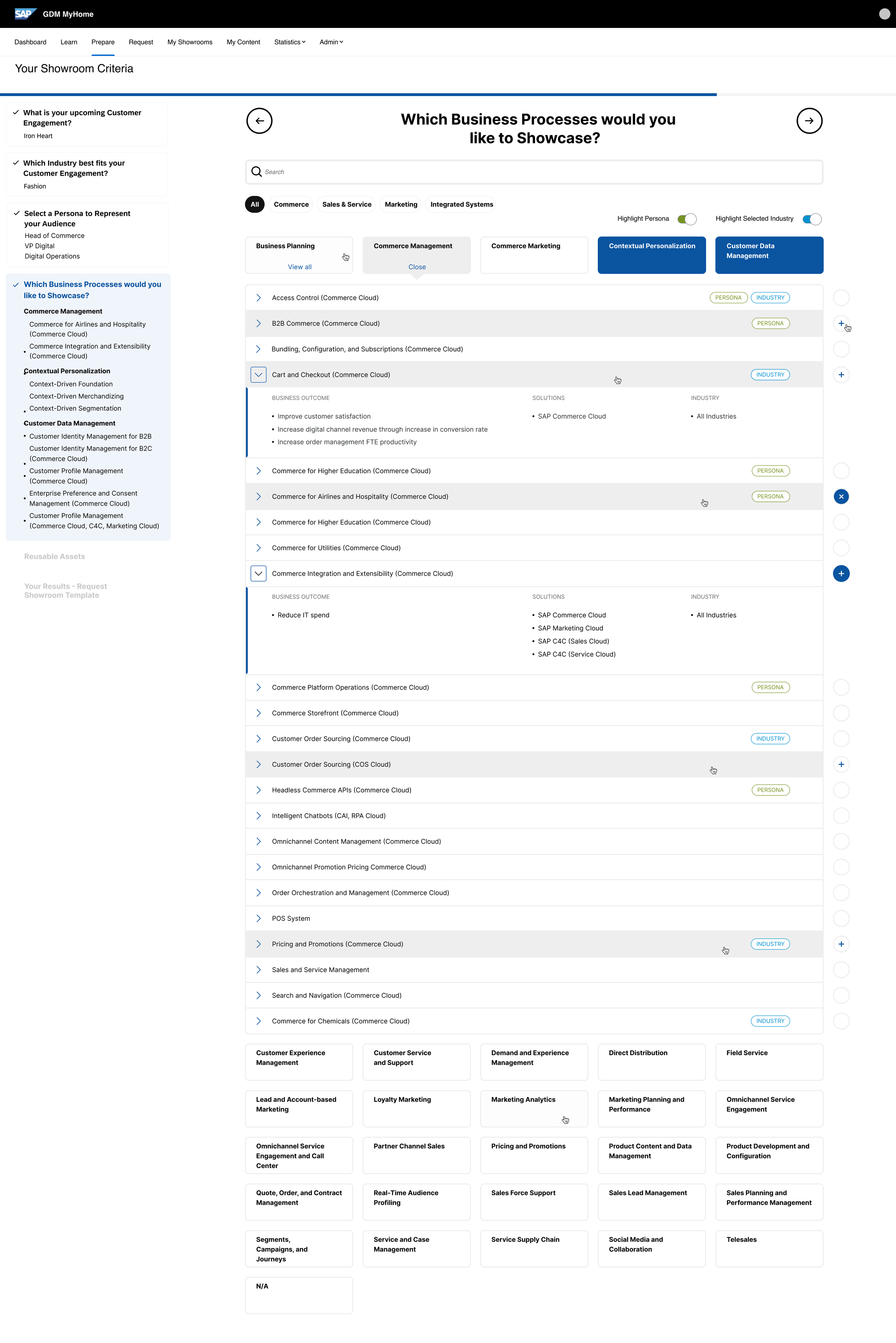 Designed to compliment the SAP Fiori framework featuring custom components and libraries, the Prepare app achieved its original goal to reduced overheads and continued to evolve in support of users. Offering better tailored results and wider content to assist colleagues in winning customers to SAP It's now an established fundamental stage in the Pre-sales customer journey and the design and usability has achieved much positive feedback from customers and colleagues alike.